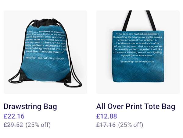 Hi everyone, just to let you all know that I now have a Redbubble shop where you can buy some merchandise with my art on it. Some of it is related to my book Sirensong.